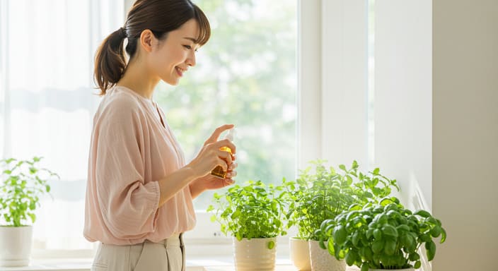 ハッカ油やミントの香りはカメムシが嫌うため、窓際にスプレーしたり植えたりすると効果があります。