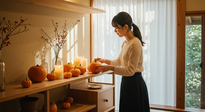 小さなかぼちゃをくり抜いてティーライトを入れるだけでも、温かみのある雰囲気を楽しめます。さらに、表面に小さな穴を開けて模様を作れば、灯りがこぼれて幻想的な光を演出することも可能です。