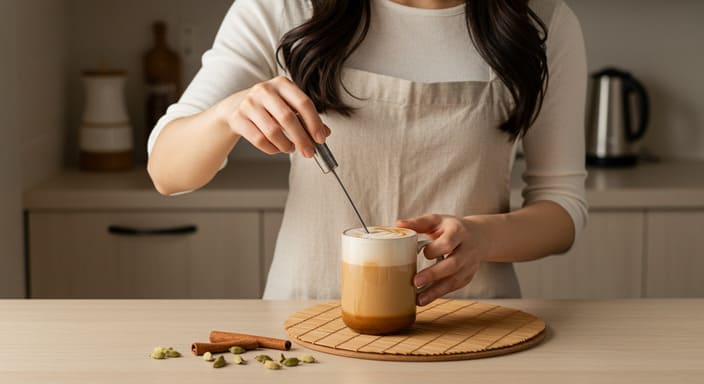 ここで焦らず待つことで、香りが牛乳の中にゆっくりと広がっていきます。さらに、蓋を軽くして蒸気を逃がさないようにすると、芳醇なアロマが閉じ込められ、飲んだ瞬間にふわっと鼻に抜ける心地よい香りを楽しめます。