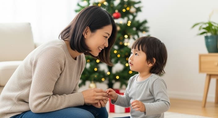 「これからは一緒にお手伝いしよう」で役割転換。さらに、この場面は“お兄さん・お姉さんになる意識”が芽生える大切なタイミングでもあります。たとえば、「サンタさんのこと、もう気づいていたかもしれないね。でもそれを言わなかったのは、きっと〇〇が優しいからだよ。