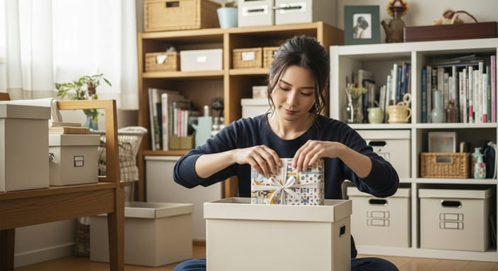 地味な袋、普段からある収納ボックスにIN。段ボールは開封して隠しやすく。さらに、家の中に既にある“存在理由がはっきりしている収納”に紛れ込ませると強いです。たとえば、日用品のストックボックス、書類ケース、ママの趣味道具のケース、パパの仕事用バッグ近くなど、日常風景に溶け込ませましょう。袋はドラッグストアやスーパーの無地紙袋、旅行グッズ収納袋などが便利。透明素材の袋は絶対避けて。音が出る包装材は布に包むか、古いタオルで包んで“生活感”を演出すると違和感ゼロになります。子どもは“特別感”に敏感なので、あえて生活感で覆い隠すのがポイントです。