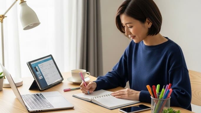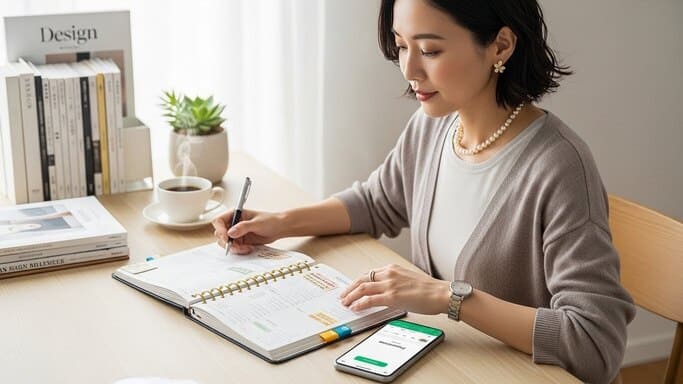 これらを無理にどちらか一方に絞らず、“得意分野だけを取り入れる”という発想に切り替えると、手帳生活がぐっとラクになります。例えば、移動中や仕事中の予定調整はスマホ、家で落ち着いている時間の振り返りや気づきのメモは手帳、といったように使い分けると負担が大幅に軽減。