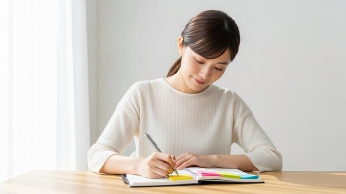ここでは、「振り返りが苦手」「毎年やろうと思っても続かなかった」という人が感じやすい悩みに、先回りして答えていきます。1年の振り返りは大切だとわかっていても、いざ書こうとすると手が止まったり、気分が重くなったりすることは珍しくありません。途中で飽きてしまう人もいれば、ネガティブな出来事ばかり思い出してしまい、「やらなければよかった」と感じる人もいます。また、せっかく振り返っても、次の行動や目標につながらず、ノートを閉じたままになってしまうケースも多いでしょう。このQ&Aでは、そうした“つまずきポイント”を自然な感情として受け止めつつ、気持ちが楽になる考え方や、無理なく続けるための工夫を紹介します。完璧な振り返りを目指す必要はありません。ここを読みながら、「それなら私にもできそう」と思える部分だけを拾ってもらえれば十分です。