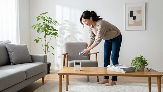 ニュースや天気予報を見ながら、リモコン周りやテーブルのホコリを取るだけでも立派な掃除になります。ソファに座ったままでもできるため、気負いなく取り組めるのが魅力です。