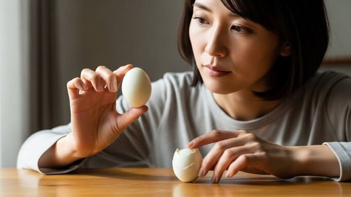 殻を剥いた瞬間、ゆで卵は外気に直接さらされる状態になります。殻という保護膜がなくなることで、手指や空気中に存在する菌が表面に付着しやすくなり、衛生状態が一気に不安定になります。