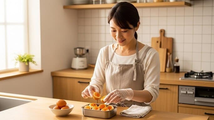 もちろん、味付け卵にしたからといって完全に安全が保証されるわけではありませんが、剥いたまま何もせずに持ち運ぶよりはリスクを下げられる方法の一つです。剥いて持ち運ぶ必要がある場合は、こうした小さな工夫を重ねることで、不安を最小限に抑えることができます。