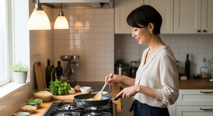 フライパンで乾煎りすると、豆の表面が温まり、香ばしさが引き立ちます。加熱によって余分な水分が飛び、食感も軽くなるため、そのまま食べるよりも口当たりがやさしく感じられることがあります。ポイントは弱火でゆっくり転がすこと。