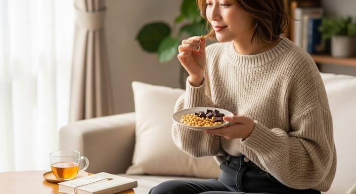 間食として取り入れると、節分豆はぐっと消費しやすくなります。食事としてしっかり使おうとするとハードルが上がりがちですが、おやつの一部として考えるだけで、心理的な負担はかなり軽くなります。