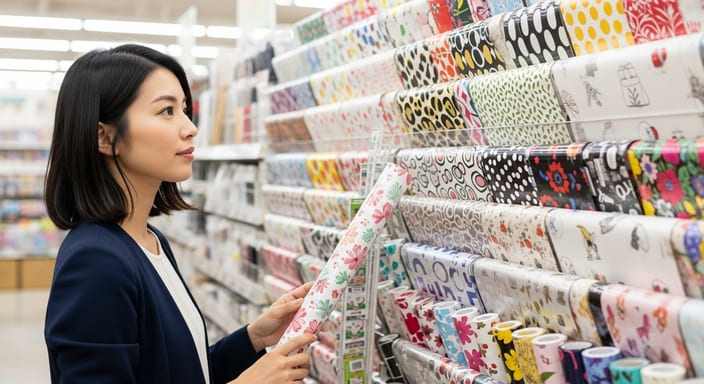 色味や質感のバリエーションが増え、選ぶ楽しさが一気に広がります。薄紙や半透明ペーパー、ニュアンスカラーなど“雰囲気づくり”に向いた素材が見つかりやすく、リボンやシールまでまとめて揃えられるのも便利。価格はやや上がりますが、そのぶん仕上がりの統一感を出しやすく、プレゼント感を強めたいときに向いています。