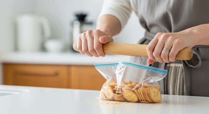 砕いた代用品は、湿気対策をしておくと食感を長持ちさせられます。密閉できる保存容器やジッパー付き袋に入れ、できるだけ空気を抜いて保管するのが基本です。乾燥剤があれば一緒に入れておくと安心です。