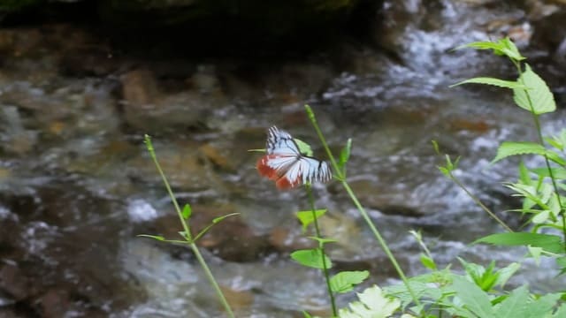 初夏の時期には川沿いにピンク色の花が一面に広がり、その蜜を求めて数十匹単位のアサギマダラが舞う光景が見られます。