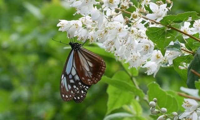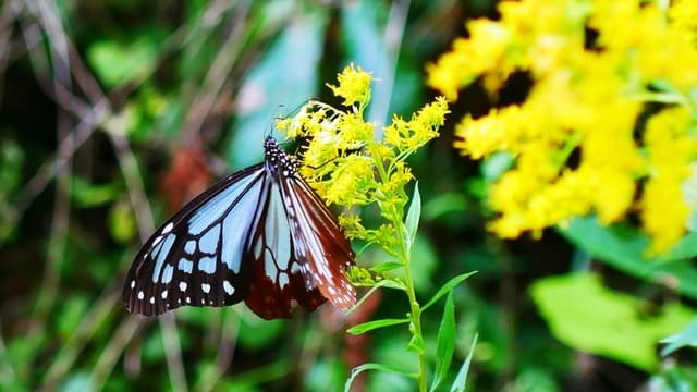標高500〜1500mの高地で花が咲く場所を狙うのがコツで、特にキク科やガガイモ科の花が咲き誇るエリアでは吸蜜する姿をじっくり観察できます。