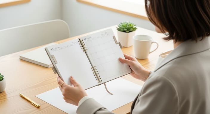 A5手帳は、書くスペースに余裕があるため、「しっかり書きたい」「考えを整理したい」という場面で力を発揮します。単なる予定管理にとどまらず、情報や思考をまとめる“作業の場”として使いたい人に向いているサイズです。ここでは、具体的な使用シーンごとにA5手帳の活かし方を見ていきましょう。