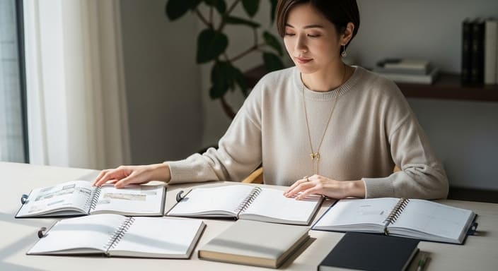手帳選びは、使うシーンを具体的に思い浮かべると失敗しにくくなります。ただサイズを比べるだけでなく、「いつ・どこで・どんな気持ちで使うのか」を想像することで、自分に合う手帳が見えやすくなります。ここでは目的別に考え方を整理していきましょう。